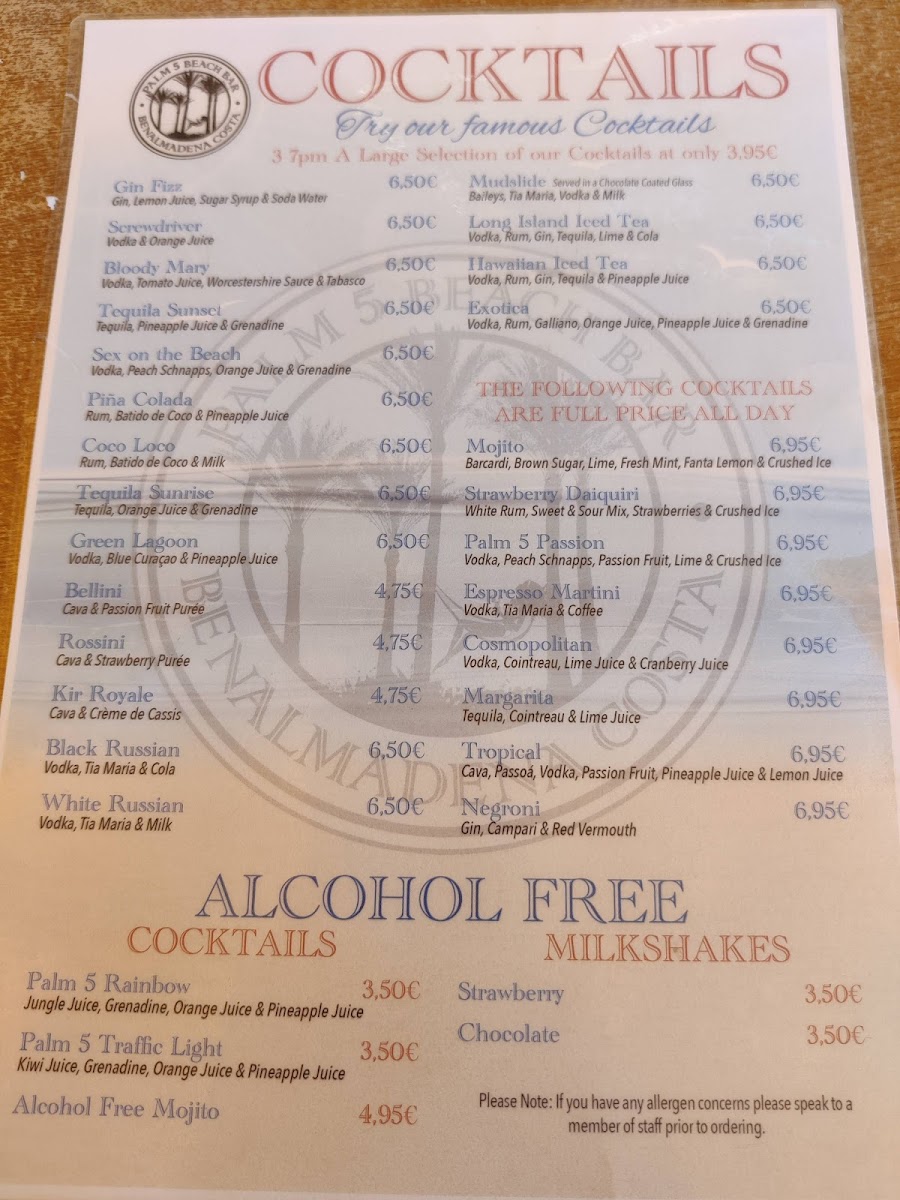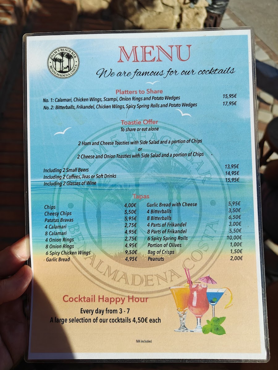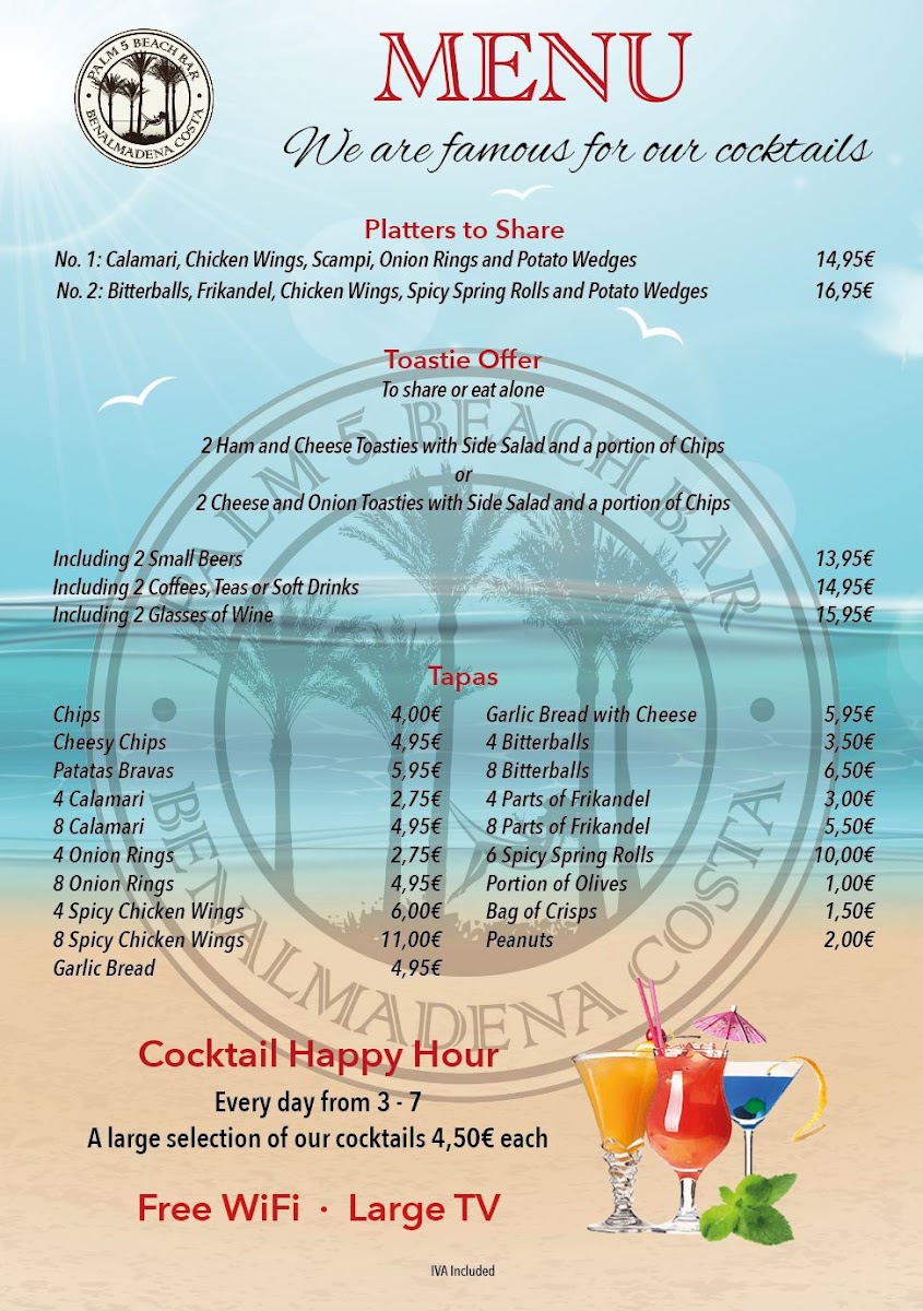 Palm 5 Beach Bar Menu
