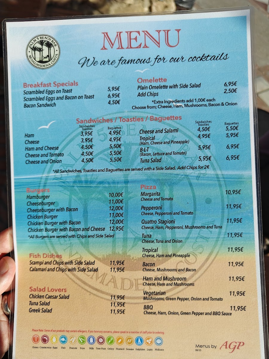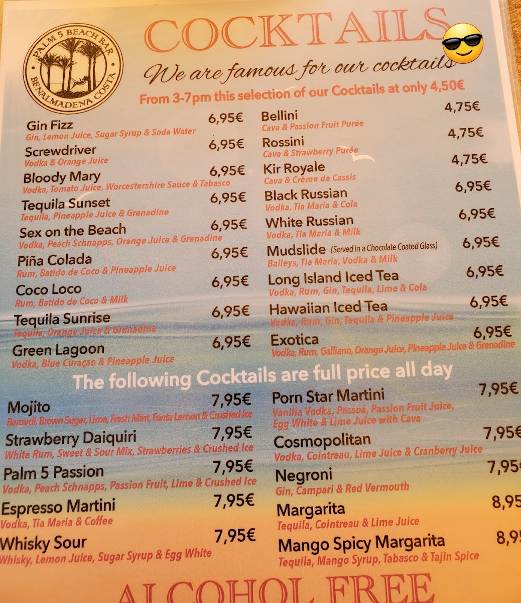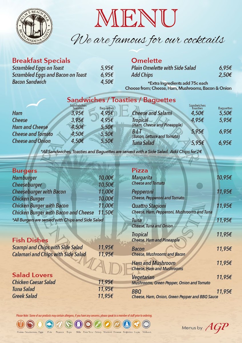 Palm 5 Beach Bar Menu